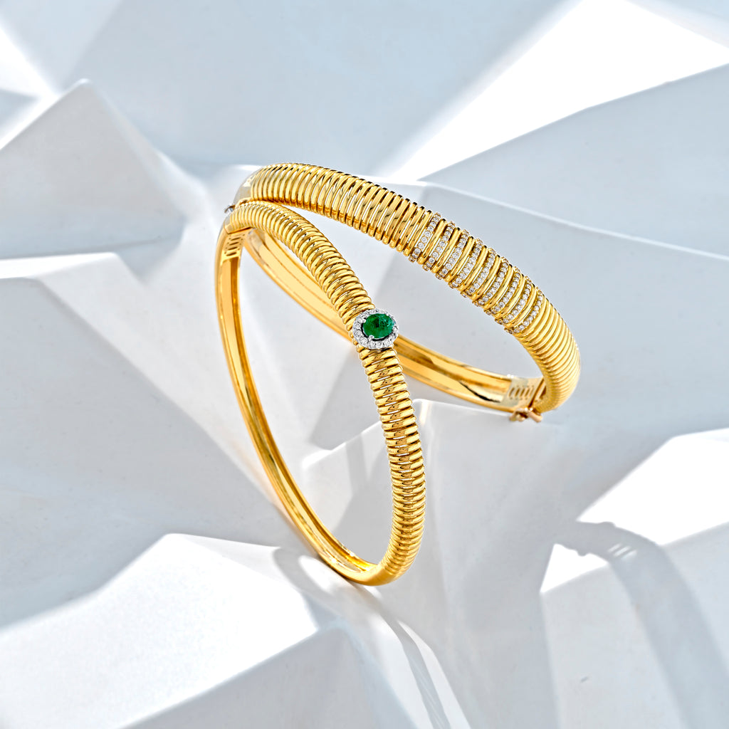 BRACCIALE FASCIA IN ORO GIALLO CON OVALE DI SMERALDO E DIAMANTI