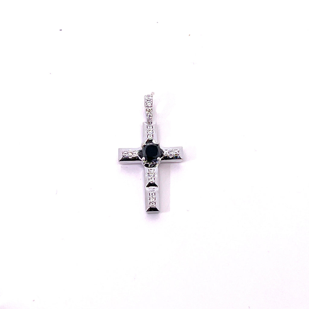 CROCE IN ORO BIANCO CON DIAMANTI E DIAMANTE NERO CENTRALE