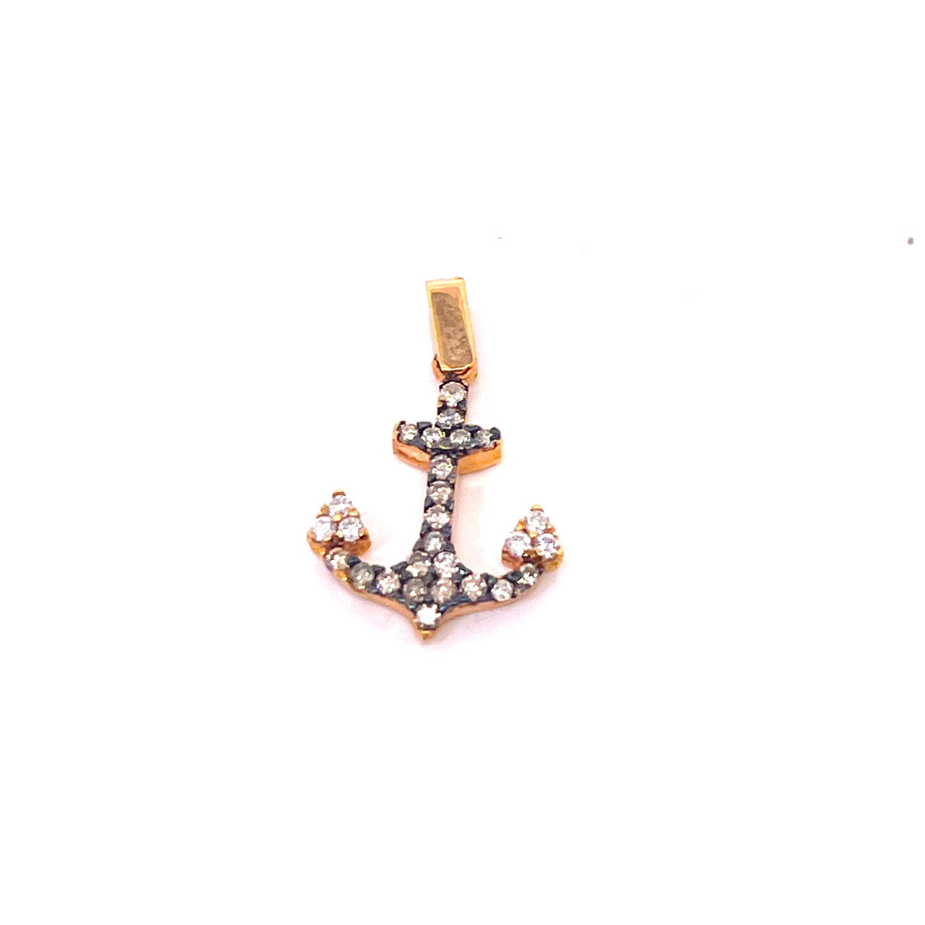 CIONDOLO ANCORA IN ORO RASA DI DIAMANTI BIANCHI E BROWN