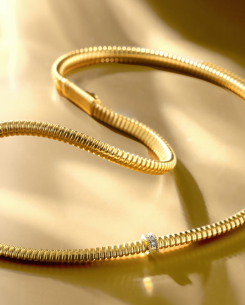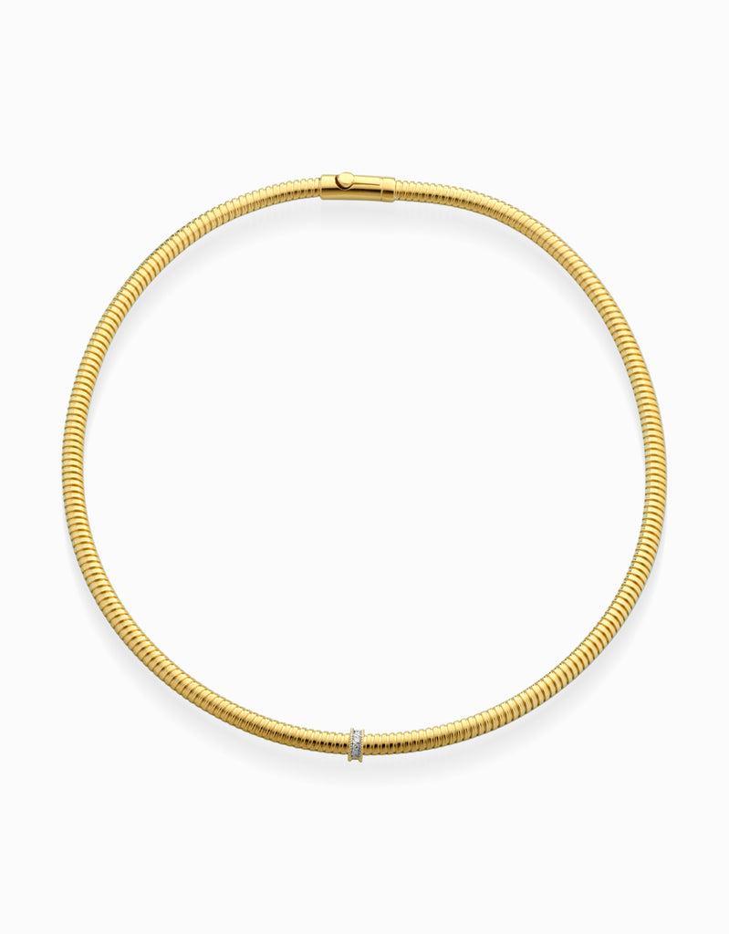 COLLANA GIROCOLLO IN ORO GIALLO 18KT SOTTILE, CON DIAMANTI CENTRALI