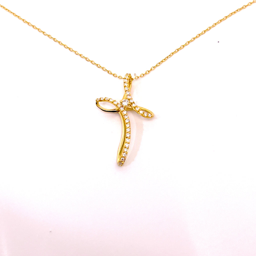 CROCE FANTASIA IN ORO GIALLO CON DIAMANTI E CATENA