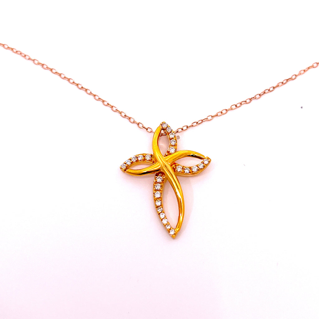 CROCE FANTASIA IN ORO ROSA CON DIAMANTI CON CATENA
