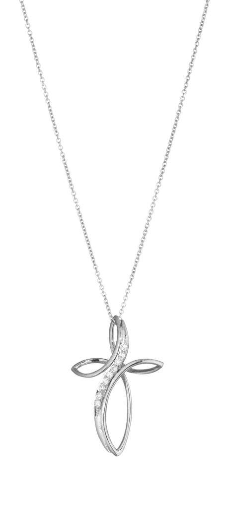 CROCE IN ORO BIANCO CON DIAMANTI E CATENA