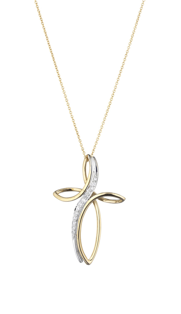 CROCE IN ORO GIALLO CON DIAMANTI E CATENA