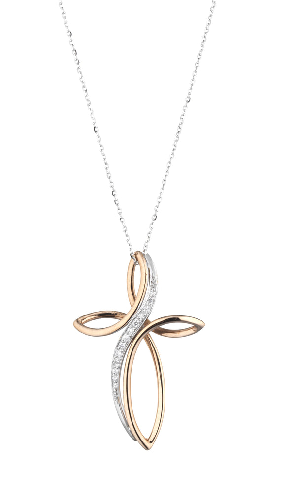 CROCE IN ORO 18KT, ORO ROSA CON DIAMANTI E CATENA