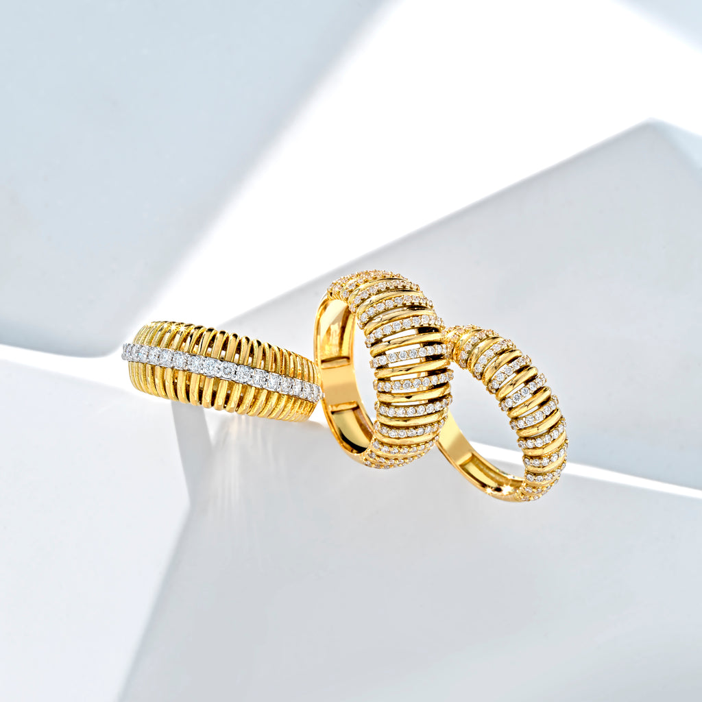 ANELLO IN ORO 18KT, ORO GIALLO CON STRISCE DI DIAMANTI ANELLO FASCIA STRETT